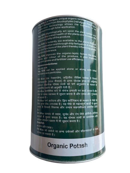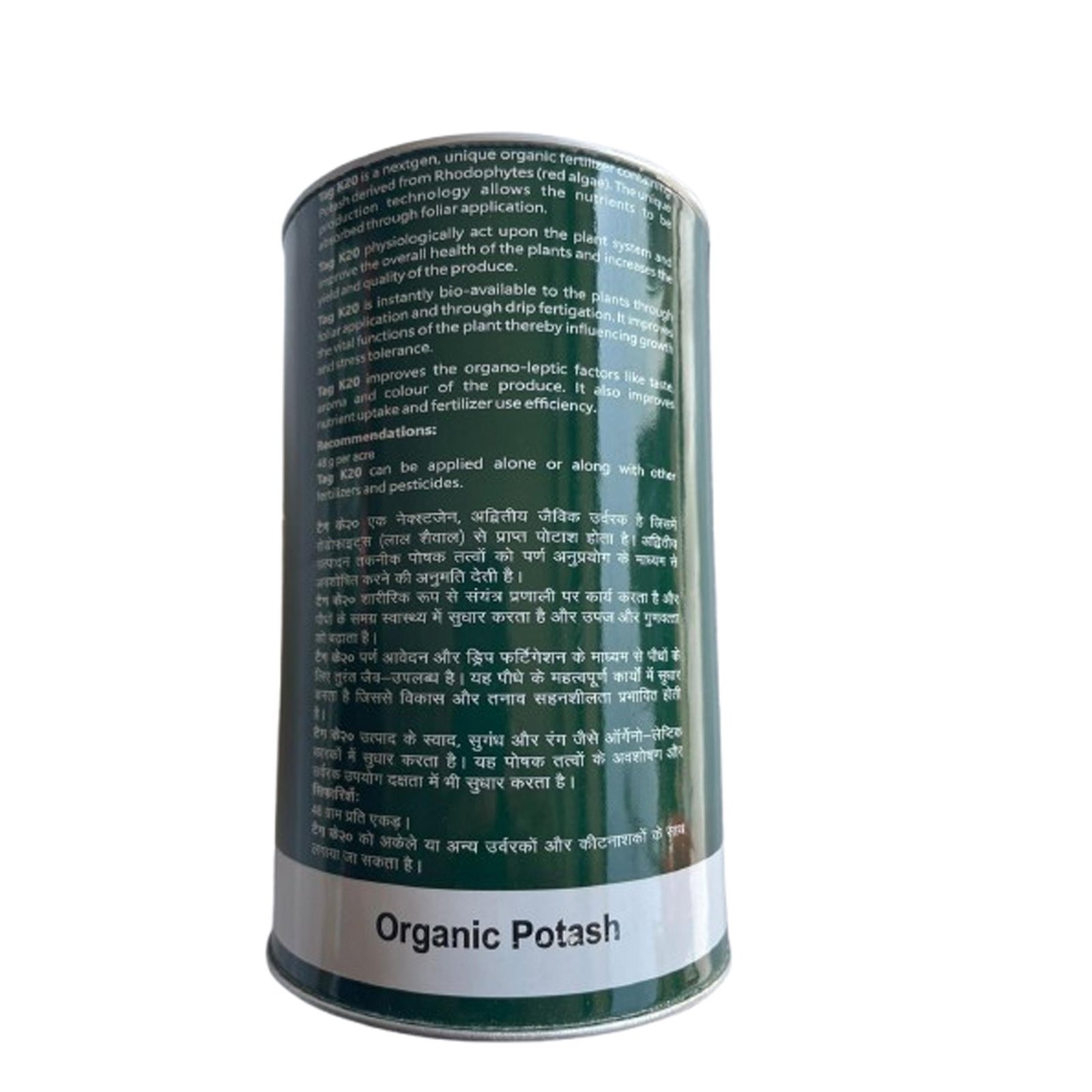 Tag K20 is a first of its kind new generation product containing potash (20% minimum) derived from Rhodophytes (marine red algae) and loads of Sulphur (1.5% minimum) & bio active molecules.